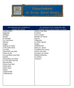 - Refuser de prendre en charge les clients souhaitant se rendre en dehors du département de la Seine‐ Saint‐Denis.